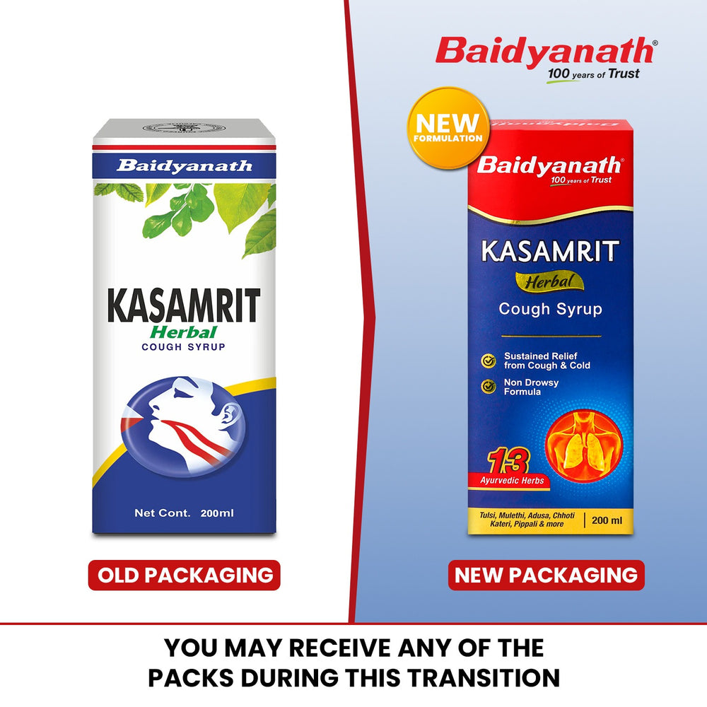Baidyanath Kasamrit is a herbal and Ayurvedic formulation designed to help relieve cough and support overall respiratory health. Made with a blend of potent herbs and natural ingredients, this syrup is specifically crafted to target both dry and wet coughs. It also helps soothe throat irritation and supports relief from chest congestion, making it a helpful remedy for maintaining respiratory comfort.