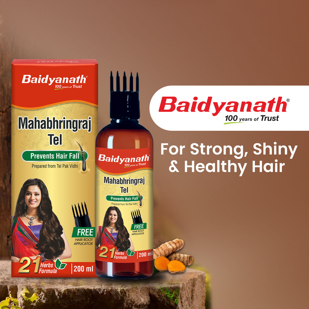 The benefits of using Baidyanath Mahabhringraj Tel include supporting hair growth and improving scalp health. Regular application helps reduce hair fall and promotes thicker hair, making it an ideal choice for those seeking natural solutions for hair concerns. This Ayurvedic formulation helps balance the natural oils in the scalp, helping to alleviate dryness and flakiness.